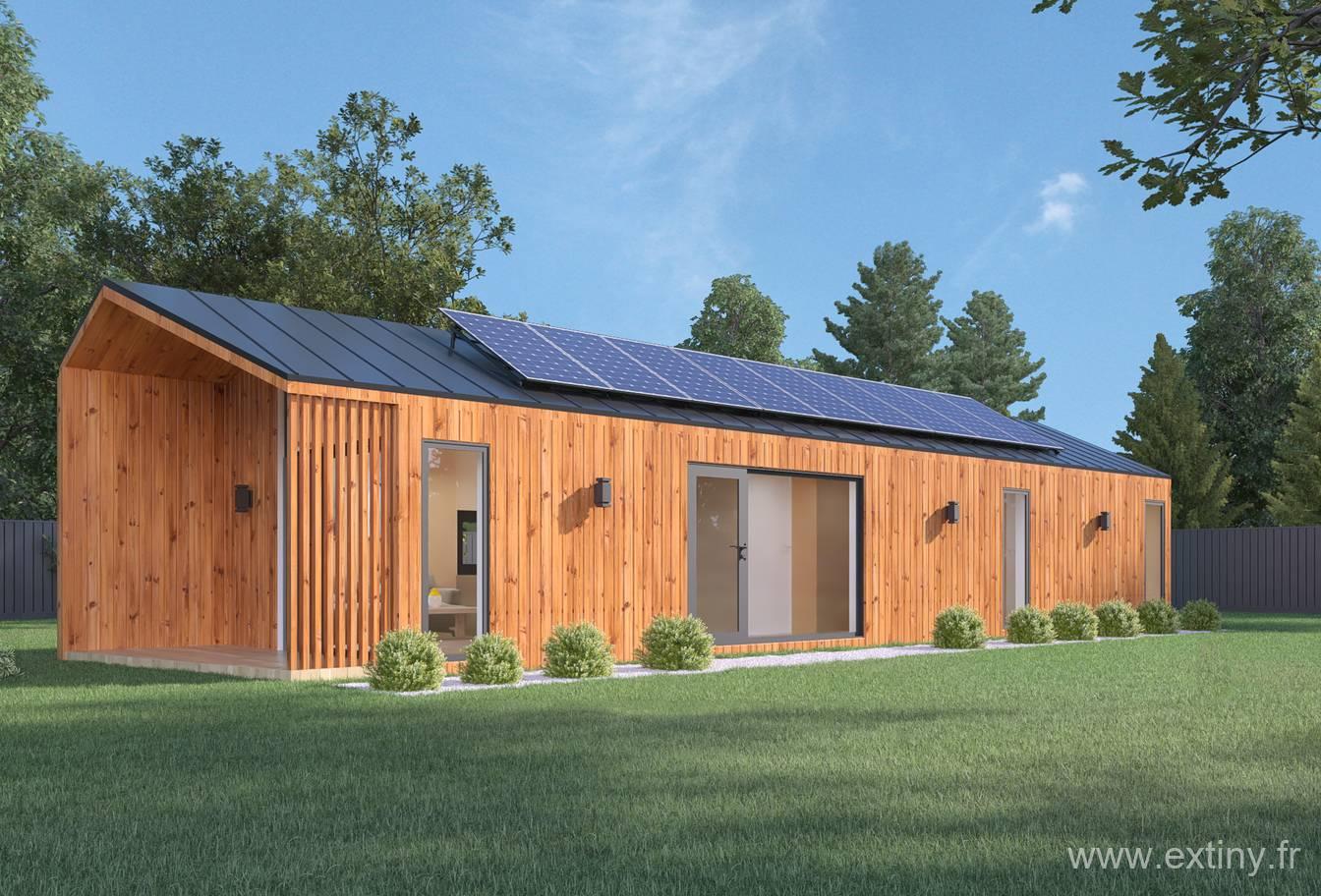 La maison modulaire Ginkgo d’Extiny est une solution innovante pour enrichir votre espace de vie. Avec une surface de 56,5 m², il se prête à divers usages : bureau, atelier, chambre d’amis ou logement indépendant.